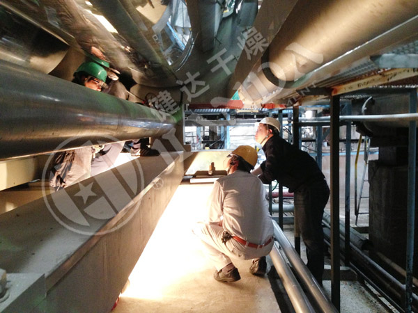 4、干燥時間短:物料的干燥周期一般只有10-300秒,在適合于熱敏性物料。若將滾筒干燥機設置在真空器中,則可在減壓條件下運行。